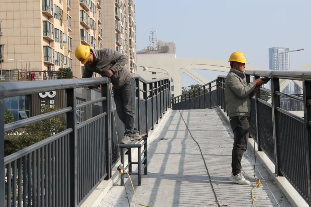 近日,市第三十八中学人行天桥项目已进入最后冲刺阶段,整体形象进度达95%,其建成后将有效实现人车分流,保障学生出行安全并缓解交通拥堵,对提升区域交通通行效率、改善人居环境品质具有重要作用。